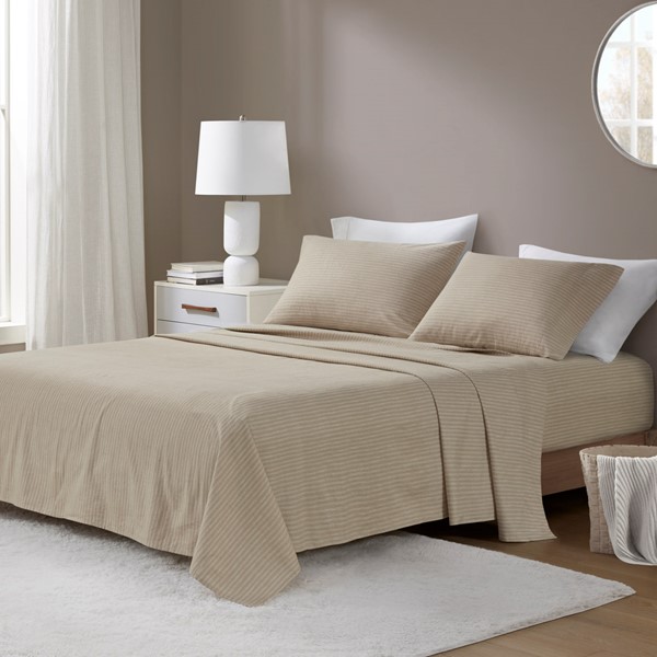 Sleep in warm and ultra-soft comfort with the Beautyrest Oversized Cotton Flannel Sheet 4 piece sheet set. This flannel sheet set features superior brushed fabric for incredible softness and oversized dimensions to fit premium mattresses. Pre-shrunk for a guaranteed comfort and secure fit. This sheet set is also OEKO-TEX certified, meaning it does not contain any harmful substances or chemicals to ensure quality comfort and wellness.