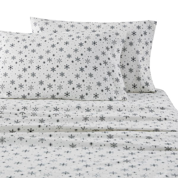 Beautyrest Oversized Cotton Flannel 4 Piece Sheet Set in Black Snowflakes, Full BR20-4668