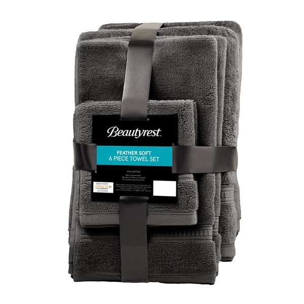 Beautyrest Plume 100% Cotton Feather Touch Antimicrobial Towel 6 Piece Set in Charcoal, 6-Piece BR73-2440