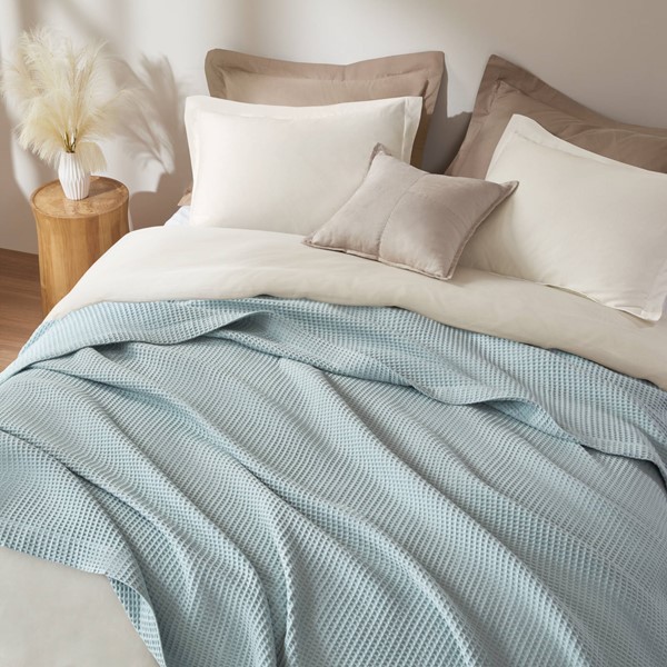 The Madison Park Waffle Weave Blanket offers an added layer of warmth and comfort to your bed or couch. Made from ultra-soft 100% cotton, this lightweight blanket features tightly woven waffle weave that reduces pilling. The waffle weave also helps reduce shrinkage after washing and the breathable cotton makes this blanket perfect for your year round warmth. Machine washable for easy care, this cotton blanket is OEKO-TEX certified, meaning it does not contain any harmful substances or chemicals to ensure quality comfort and wellness.
