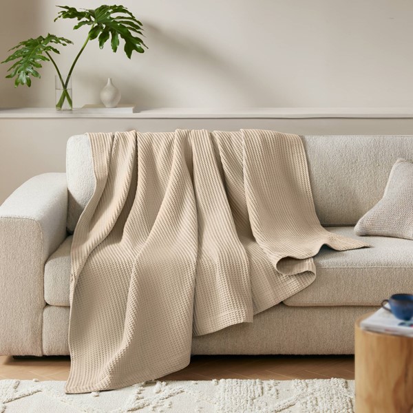 10 reviews for Madison Park Waffle Weave Cotton Blanket in Khaki, King BR51N-3839
