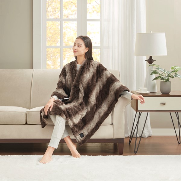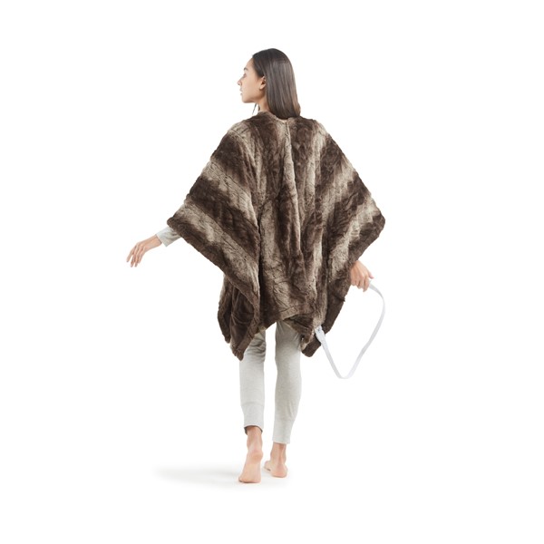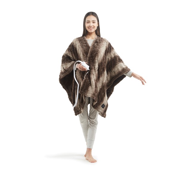 Relax in pure cozy comfort with the Beautyrest Zuri Heated Wrap with Built-in Controller. Made from ultra-soft fur with a plus reverse, this heated wrap is designed to easily be worn over the shoulders to keep you warm and comfortable. An easy one-touch built-in controller has 5 heat settings to provide the perfect amount of warmth with virtually no electromagnetic field emissions. A 2 hour auto shut off timer helps ensure your safety during prolonged use. This Wrap is also OEKO-TEX certified, meaning it does not contain any harmful substances or chemicals to ensure quality comfort and wellness. Machine washable for easy care, this heated wrap is perfect to keep you warm and snug on those cold nights.