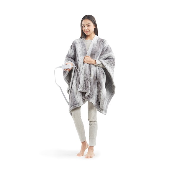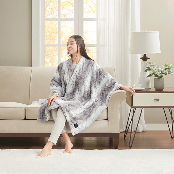 Relax in pure cozy comfort with the Beautyrest Zuri Heated Wrap with Built-in Controller. Made from ultra-soft fur with a plus reverse, this heated wrap is designed to easily be worn over the shoulders to keep you warm and comfortable. An easy one-touch built-in controller has 5 heat settings to provide the perfect amount of warmth with virtually no electromagnetic field emissions. A 2 hour auto shut off timer helps ensure your safety during prolonged use. This Wrap is also OEKO-TEX certified, meaning it does not contain any harmful substances or chemicals to ensure quality comfort and wellness. Machine washable for easy care, this heated wrap is perfect to keep you warm and snug on those cold nights.