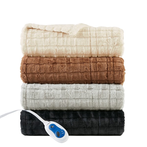 Beautyrest Zuri Oversized Faux Fur Heated Throw in Black Texture, 50×70″ BR54-4697