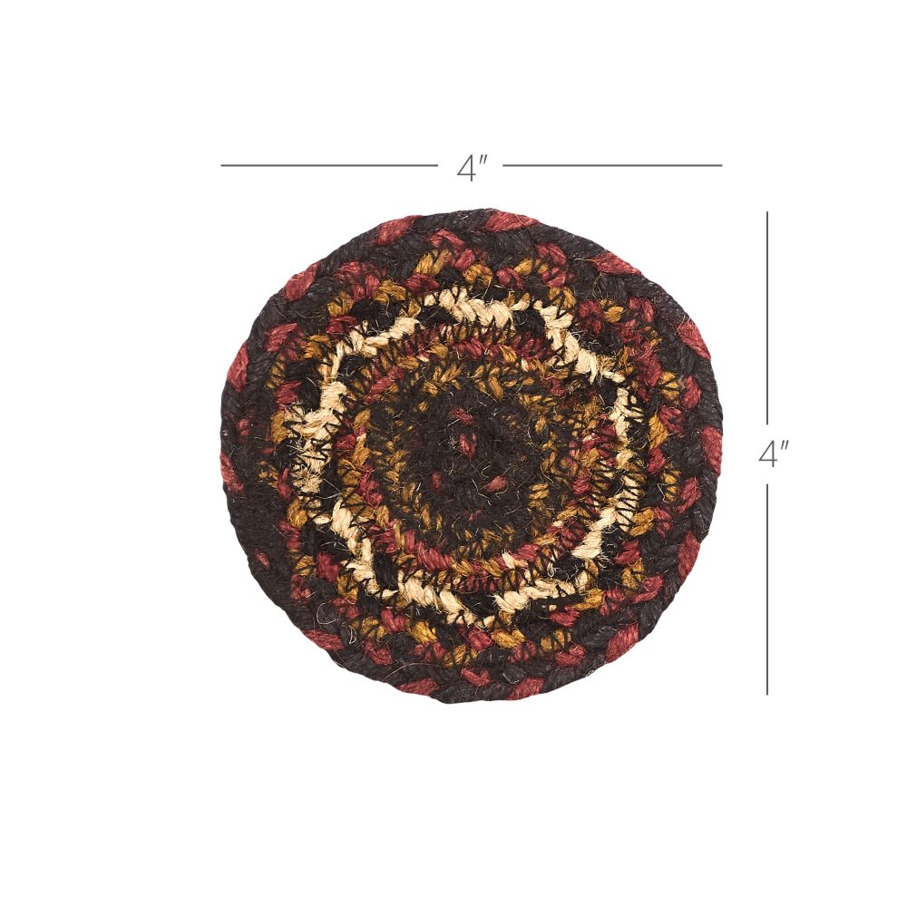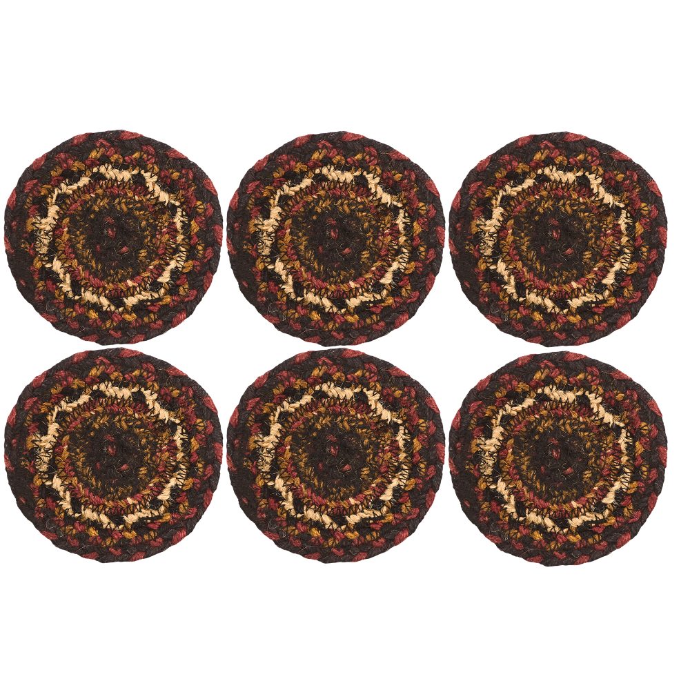 No one likes a coffee ring on their table. Protect your furniture with texture-rich, country style with braided jute in rich shades of red, black and deep tan. The Beckham Jute Coaster Set features a useful pack of six 4-inch round coasters. These classic country drink coasters provide a low-profile addition to keep beverages from harming delicate surfaces. Circular patterns in a detailed braid add a cozy, homemade feel wherever they are placed. Pair with coordinating tabletop and kitchen pieces from the Beckham Collection by VHC for placemats, table runners, chair pads, and trivets in a matching rustic country style.
