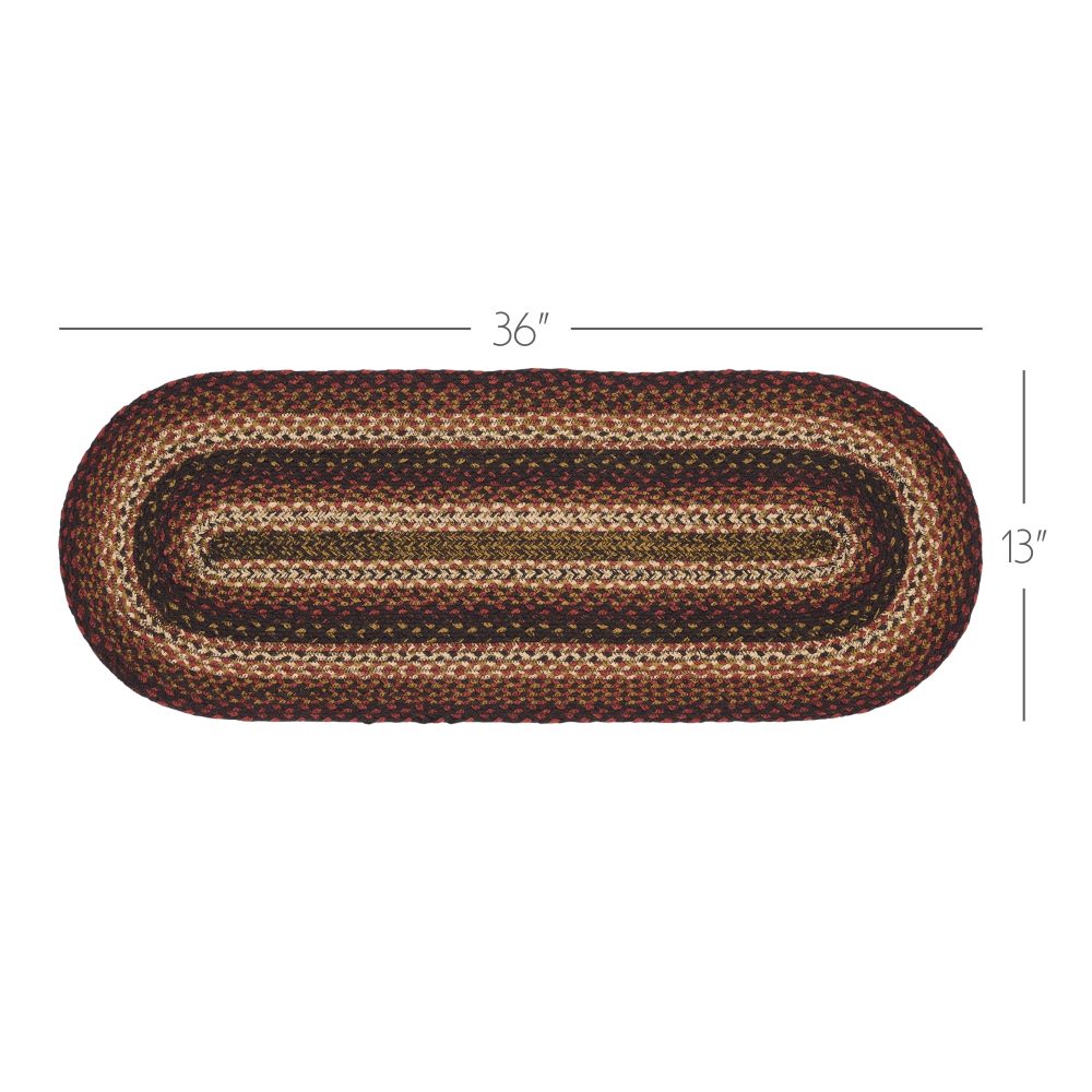 Create a bold, rustic table for friends and family to gather round with deep coloring and classic texture. The Beckham Jute Runner includes an individual oval table runner measuring 13x36 inches made from a premium Jute blend. The rich texture of braided jute is given a warm country feel with earthy tones of brick red, dark tan, country black for a dark style that feels as much at home in modern primitive kitchens as rustic lodge settings. Complete your tabletop decor with other pieces from the Beckham Collection by VHC for vintage farmhouse style.
