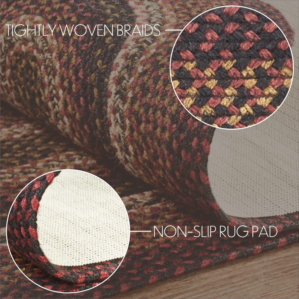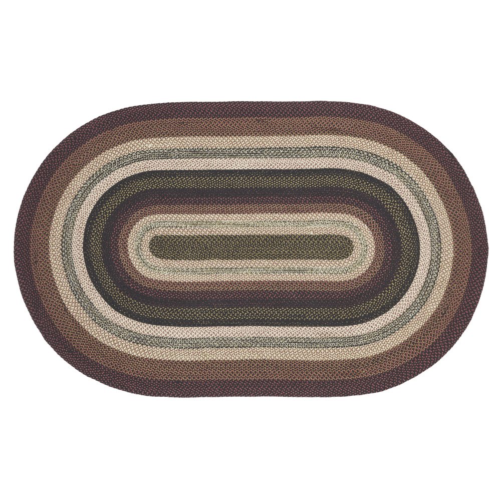 Create a warm, homey feeling with deep primitive colors in a curl-resistant jute blend that adds style and safety anywhere a versatile area rug is needed. The Beckham Jute Rug measures 60x96 inches and features a classic oval shape and tight braids constructed with a durable jute blend. The special blend relaxes faster and stays flat. The included PVC mat makes sure your beautifully braided jute rug stays exactly where it should. Features a blend brick red, country black and dark tan for a dark, rustic look that complements a wide array of country farmhouse decor.