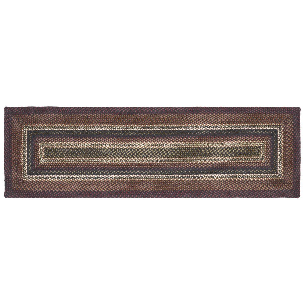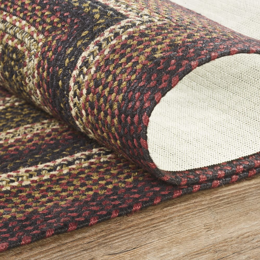 Create a warm, homey feeling with deep primitive colors in a curl-resistant jute blend that adds style and safety anywhere a long runner style rug is needed. The Beckham Jute Rug measures 22x72 inches and features a classic rectangle shape and tight braids constructed with a durable jute blend. The special blend relaxes faster and stays flat. The included PVC mat makes sure your beautifully braided jute rug stays exactly where it should. Features a blend brick red, country black and dark tan for a dark, rustic look that complements a wide array of country farmhouse decor.