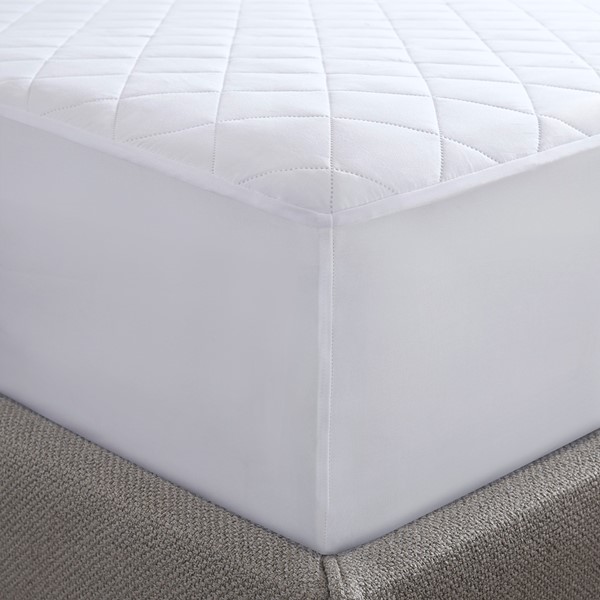 Our Bed Guardian(r) Essential Waterproof Mattress pad is designed for to protect your mattress investment from spills and liquids while providing gentle comfort. A Microfiber top fabric treatedwith FUZE(r) permanent and all natural antimicrobial is layered over filling of 3oz per square yard Somnoloft(tm) polyester fiber which is also bonded to enhance durability. The bottom fabric consists of polyester but is covered with a waterproof membrane for ultimate mattress protection. The Essential Waterproof Pad stays snug on the mattress with our GTF 16″ skirting and looks beautiful on the bed with a 4″ diamond quilted pattern.