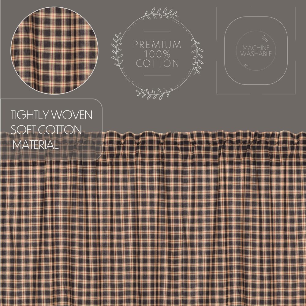 Add a cozy country accent to your windows with warm, traditional tones and classic style. The Bingham Star Plaid Tier measures 36x36 inches and offers a soft black base with khaki tan and barn red striping for a bold dark plaid. The rustic tier set is fully lined for additional protection from the sun and to protect the 100 percent cotton curtain from fading. A rod pocket is included for easy hanging.