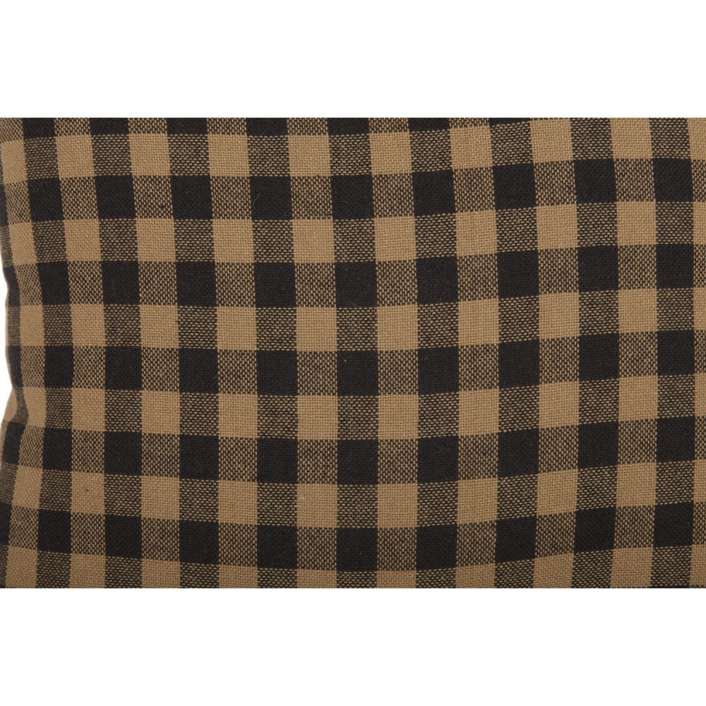 Add rich colors and classic style with raven black and khaki tan checkered plaid. The Black Check Fabric Pillow measures 12x12 inches and features a traditional buffalo plaid in a primitive country color palette. The bold checks are the same on the front and back. Spot clean for easy care. The cozy country accent pillow features a 100 percent cotton shell with a bouncy polyester fill.
