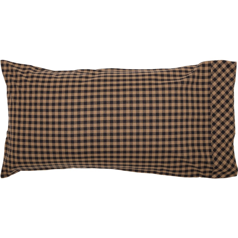 Relax in comfort with soft, 100 percent cotton fabric in a rich raven black and khaki tan checked plaid. The Black Check King Pillow Case Set includes two 21x40 inch covers in rustic shades to bring classic country comfort to a simple gingham print. Coordinate with bedding and more from the Black Check Collection by VHC for more casual designs that elevate your primitive country decor.