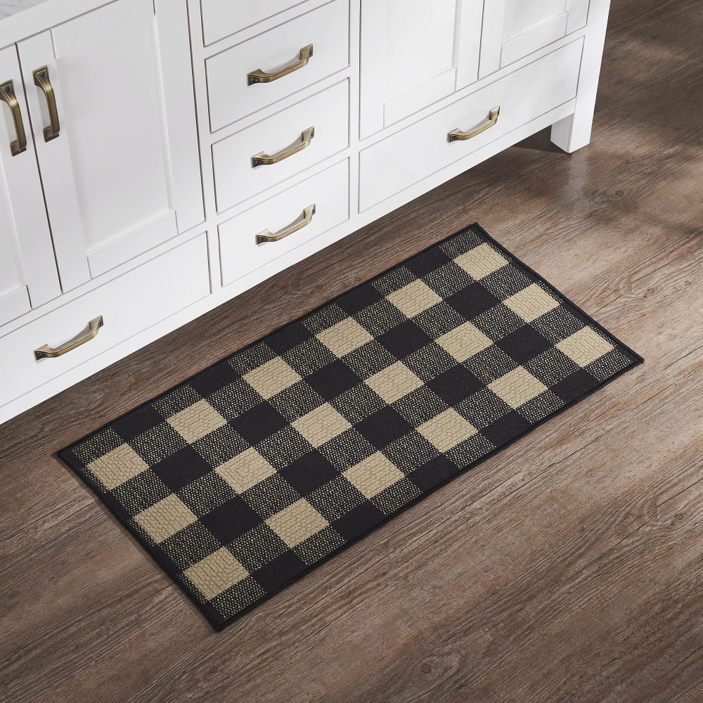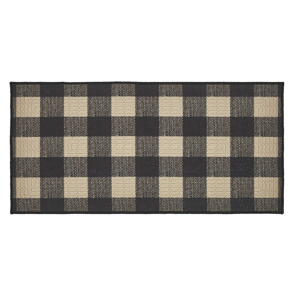 Introduce the rustic charm of Country living with our Black Check Collection Polyester Rug in Country Black. This rectangular accent rug, measuring 17x36 inches, is designed to bring warmth and character to your space. The primitive check pattern adds a touch of nostalgia while the durable polyester construction ensures it's suitable for high traffic use. The Black Check Collection Polyester Rug in Country Black combines the best of primitive aesthetics and modern design. Measuring 17x36 inches, this rectangular rug features a classic check pattern that evokes a sense of nostalgia, making it perfect for creating a cozy and welcoming atmosphere. Crafted from robust polyester, this rug is versatile, suitable for everyday use, adding a touch of rustic charm to your decor. No-slip latex backing helps the rug stay where you want it. Elevate your decor with the Black Check Collection Polyester Rug in Country Black. This 17x36-inch rectangular area rug beautifully blends the timeless appeal of check patterns with a contemporary touch, making it the perfect addition to your Country-inspired space. Constructed from durable polyester, it's designed for versatile use, making your home more inviting and cozy.