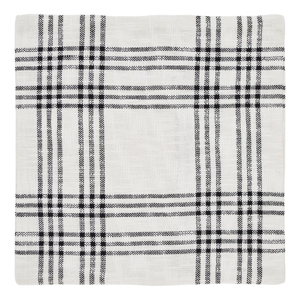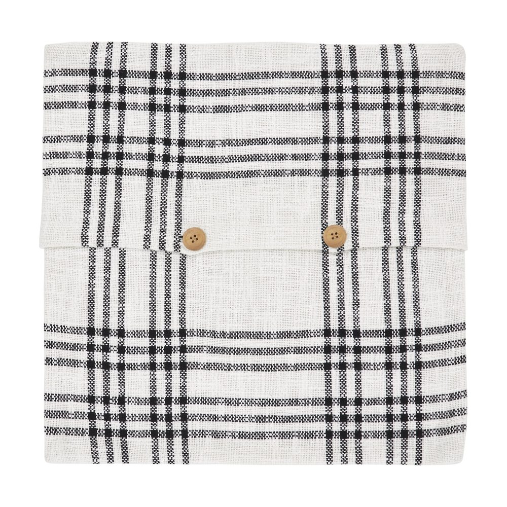 Enhance your space with a sophisticated, neutral pop of oh-so-cozy texture and traditional plaid. The 18x18 Black Plaid Fabric Pillow Cover is an artful blend of modern and rustic with a bright, cotton white base and black striping contrasting with woven texture and soft tan button-style closures. Pair this farmhouse chic decorative pillow cover with seasonal pops of color to quickly transform your entire living room or add to an entryway bench for a little taste of country style to welcome guests. Features sturdy cotton fabric and machine-sewn, double stitched seams for superior durability to protect your decorative pillows through pillow fights and movie nights. For a complete, classic plaid look with the quality you've come to expect from over 25 years of happy customers, pair with other home staples and accessories from the Black Plaid Collection by VHC.
