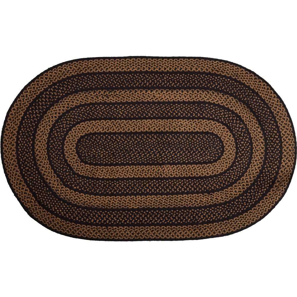 Create a warm, homey feeling with deep primitive colors in a curl-resistant jute blend that adds style and safety anywhere a large accent rug is needed. The Black & Tan Jute Rug measures 36x60 inches and features a classic oval shape and tight braids constructed with a durable jute blend. The special blend relaxes faster and stays flat. The included PVC mat makes sure your beautifully braided jute rug stays exactly where it should. Features a blend of country black and dark tan for a dark, rustic look that complements a wide array of country farmhouse decor.