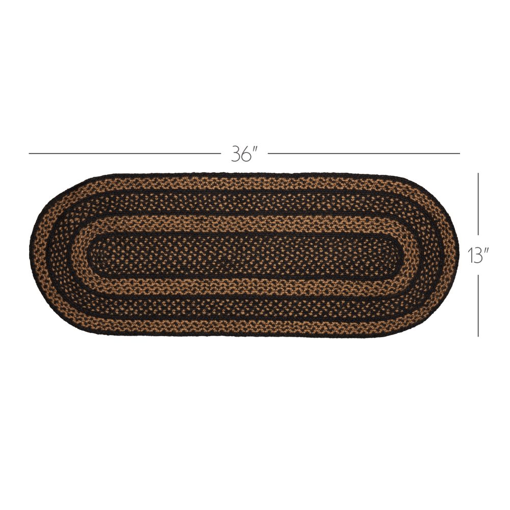 Create a warm, traditional table for friends and family to gather round with deep, primitive color and classic texture. The Black & Tan Jute Runner includes one oval table runner measuring 13x36 inches made from a premium Jute blend. The rich texture of braided jute is given a rustic feel with country black and dark tan tones in alternating rows for traditional country style. Complete your tabletop decor with other pieces from the Black & Tan Collection by VHC for vintage farmhouse style.