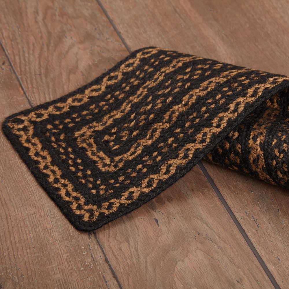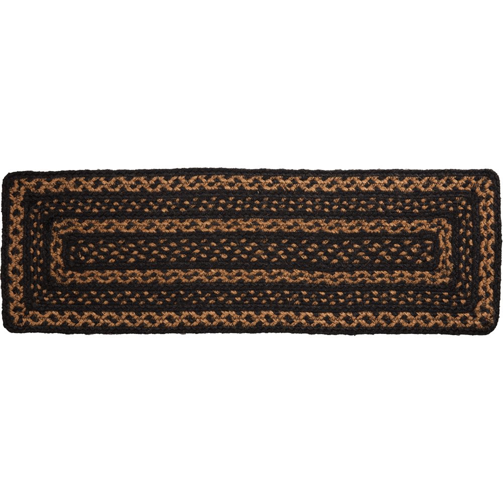Protect stairways from damage and add style with braided jute in classic, neutral tones. The Black & Tan Jute Stair Tread Rectangle includes one 8.5x27 inch stair tread back by a latex spray to help prevent slipping. The low-profile jute features an innovative blend of 80 percent Jute and 20 percent cotton and other fibers to help the tread lay flat and resist creasing. This rectangle-shaped tread features a blend of black and deep tan braids for a warm, country look. Coordinates with the Black & Tan Collection by VHC for a complete primitive country set featuring rugs, kitchen accessories and more.