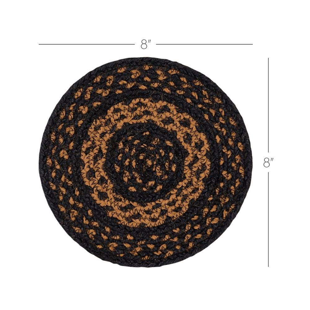 Who says trivets have to be boring? Protect counters and tables from hot pans and dishes with primitive color and classic texture. The Black & Tan Jute Trivet includes one circular trivet with an 8-inch diameter made from a premium Jute blend. The rich texture of braided jute is given a rustic feel with country black and deep tan tones for a classic country look. Complete your tabletop decor with other pieces from the Black & Tan Collection by VHC for modern primitive style.