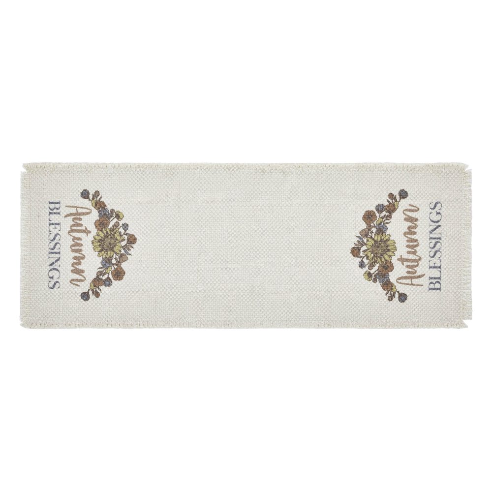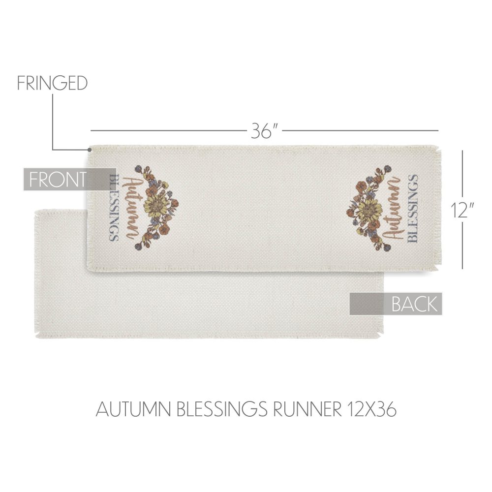 - EXQUISITE AUTUMN DETAILING: Elevate your fall decor with this 12×36 inch Bountifall Autumn Blessings Table Runner, masterfully crafted from a durable, creamy antique-white recycled fabric, showcasing a heartwarming design of golden leaves, russet blooms, and a graceful “Autumn Blessings” script; its charming fringed edges and simple hand-wash, lay-flat-dry care ensure a lasting, vintage farmhouse aesthetic perfect for Thanksgiving and harvest celebrations.