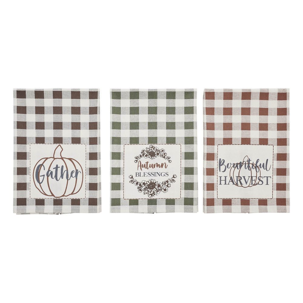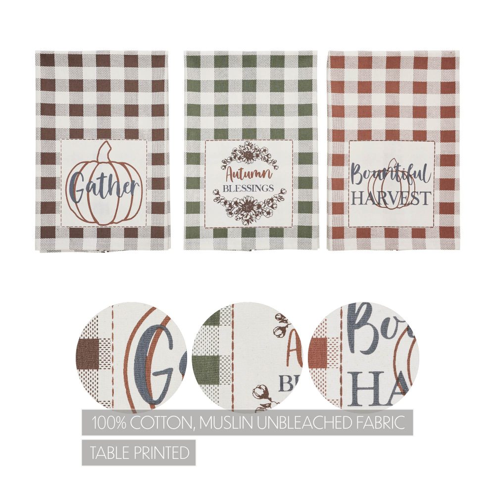 - BOUNTIFUL AUTUMN CHARM: Transform your kitchen into a cozy fall retreat with this 3-piece set of 19×28 inch decorative tea towels, each uniquely adorned with heartfelt word art like “Gather” and “Autumn Blessings,” charming pumpkin or floral accents, and classic gingham in warm seasonal hues for an inviting vintage farmhouse aesthetic.