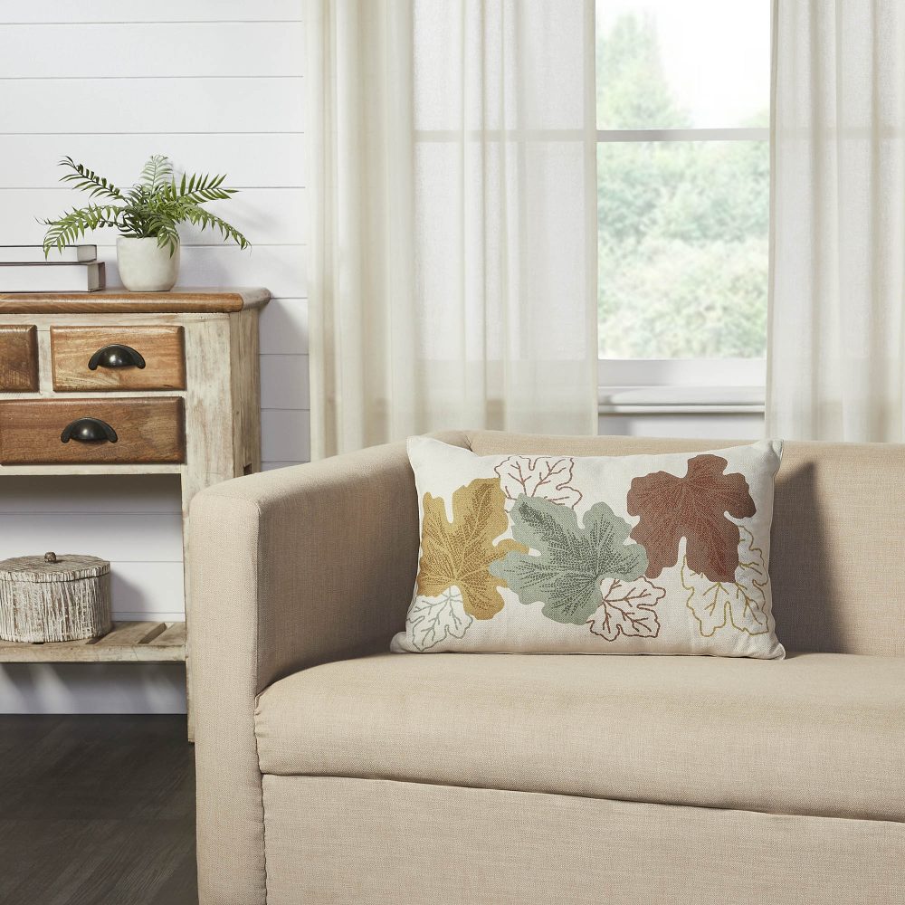 - ELEGANT AUTUMN DESIGN & INNOVATIVE DURABILITY: The Bountifall Leaves Autumn Botanical Decorative Accent Throw Pillow, measuring 14×22 inches, features a beautifully embroidered front with finely stitched fall leaves in harmonious shades of harvest gold, verdant green, and deep rust, complemented by a reversible vintage-inspired grain sack stripe in soft cream and shimmering gold. Crafted from pioneering water-resistant recycled plastic fabric, this piece ensures enduring beauty and practical resilience against spills, requiring only simple spot cleaning for maintenance, making it a perfect, versatile accent for Farmhouse or Cottage Core decor on your couch, sofa, bed, or entryway bench.