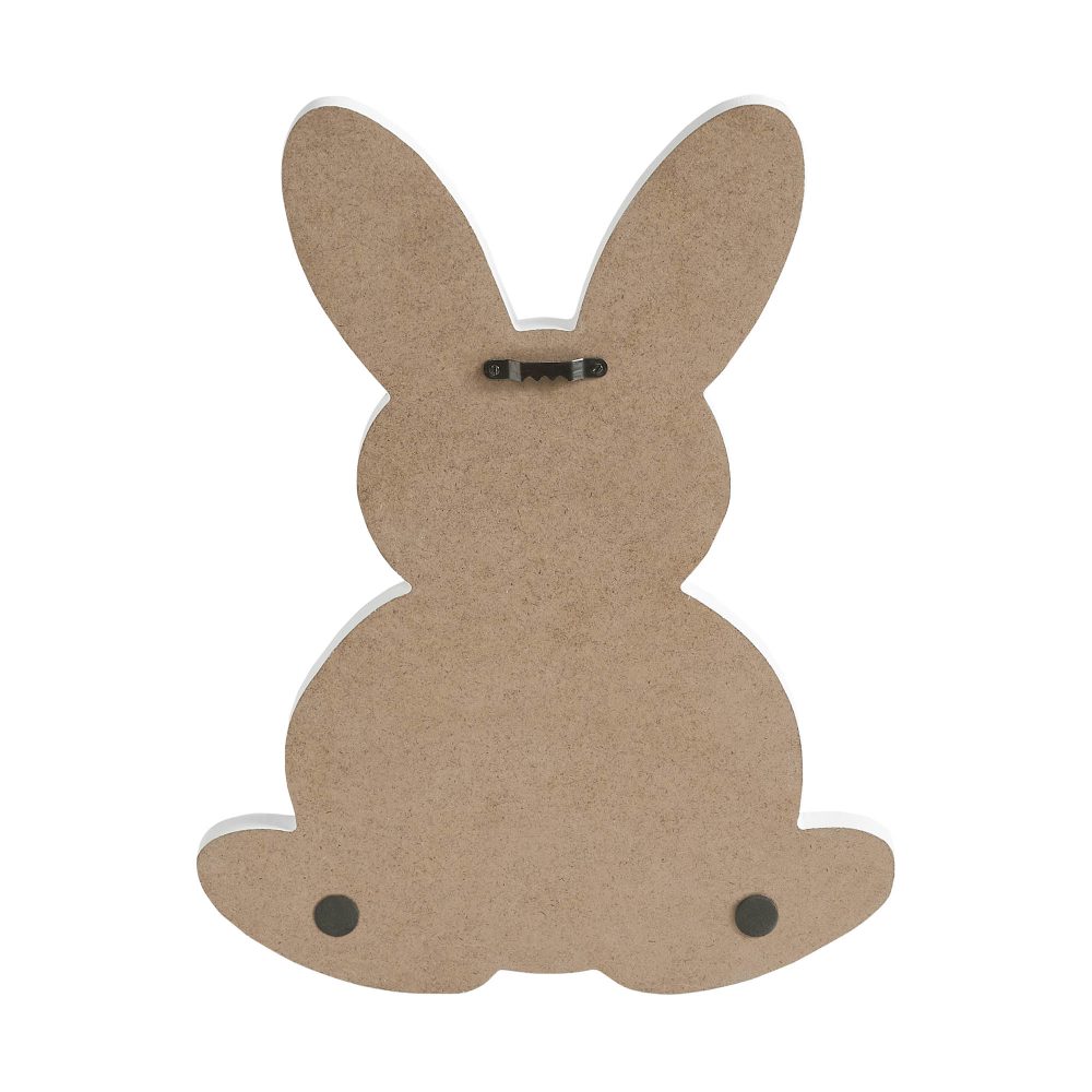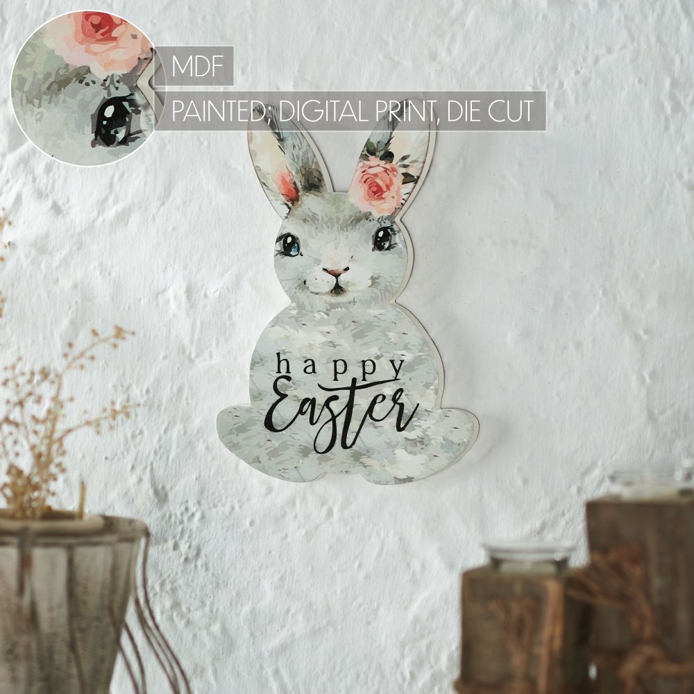 - Charming Design: Features a rabbit-shaped sign with a delightful grey bunny adorned with pink floral details.