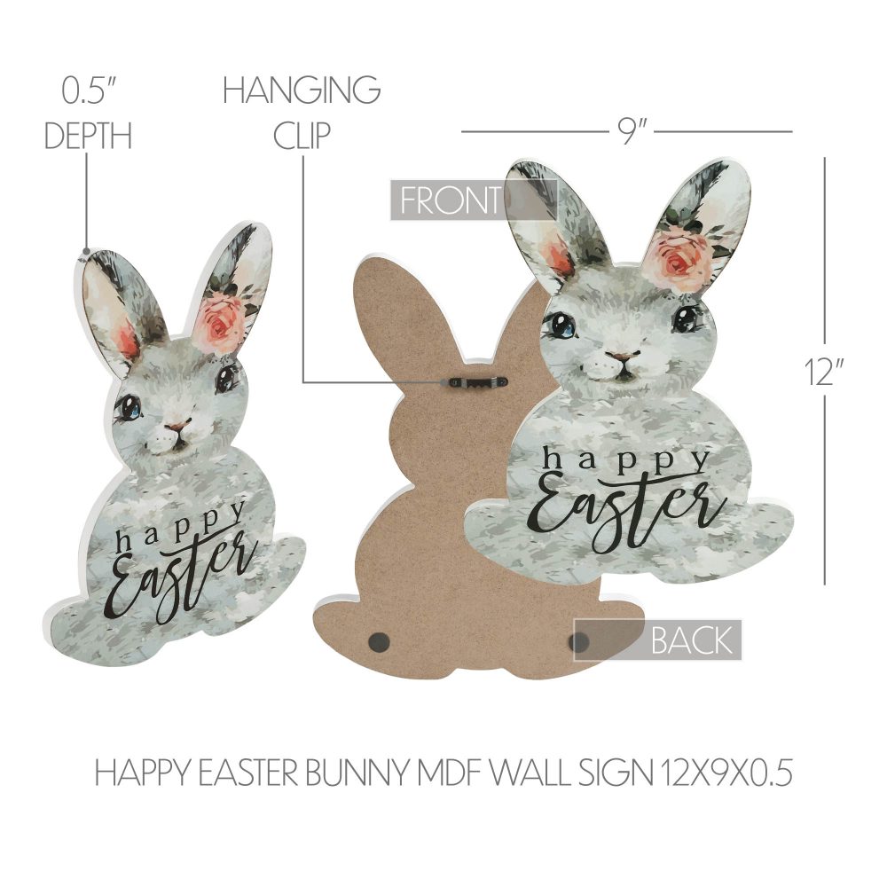 Celebrate Easter with the charming VHC Brands Bunny Hop Happy Easter Bunny MDF Wall Sign. Measuring 9x12 inches and shaped like an endearing rabbit, this sign features a delightful grey bunny adorned with pale pink floral details. The message "Happy Easter" is elegantly printed in black, adding a festive touch to your home. Crafted from durable MDF, this sign combines farmhouse and country styles with a traditional Easter theme. The dove grey, white, and pale pink color palette enhances its soft, welcoming appearance, making it a versatile decoration for various spaces. Whether you hang it on your front door, place it in your entryway, or use it as a focal point in your living room, it will infuse your home with springtime cheer. Maintaining this sign is easy-just wipe clean with a soft cloth to keep it looking its best throughout the season. With its heartwarming design and rustic charm, the VHC Brands Bunny Hop Happy Easter Bunny Wall Sign is a perfect addition to your Easter decor, bringing joy and a touch of whimsy to your holiday celebrations.