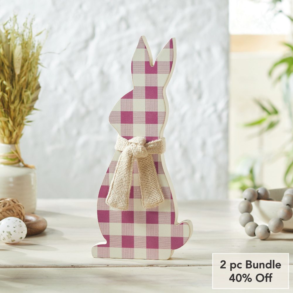 Bunny Hop MDF All Ears Lavender Check Bunny In Burlap Scarf 13x6x1 (2PC Bundle)