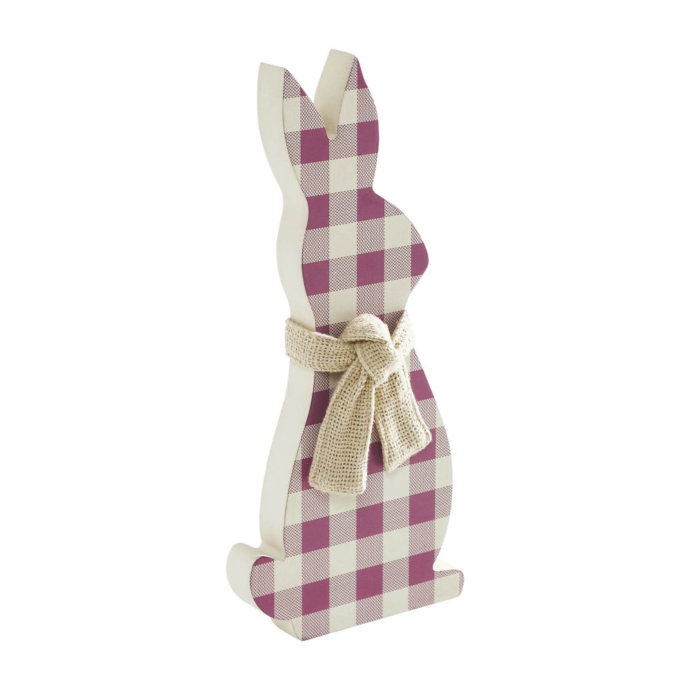 • Sku – 88502 – Bunny Hop MDF All Ears Lavender Check Bunny In Burlap Scarf 13x6x1 (2 Packages)