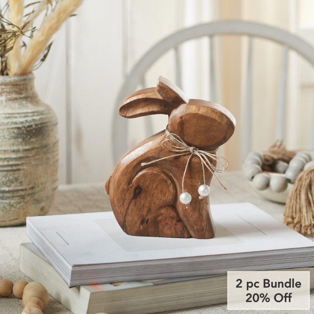 - Sku – 88465 – Bunny Hop Natural Wooden Sitting Bunny with Pearl Bead Collar – Rustic Farmhouse Easter Shelf Sitter – 6×7.25×1.5 (2 Packages)