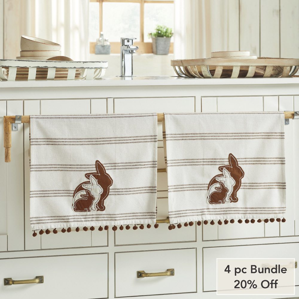 - Sku – 88631 – Bunny Hop Silhouette Bunnies w/ Pom Poms Tea Towel Set of 2 16×28 (2 Packages)