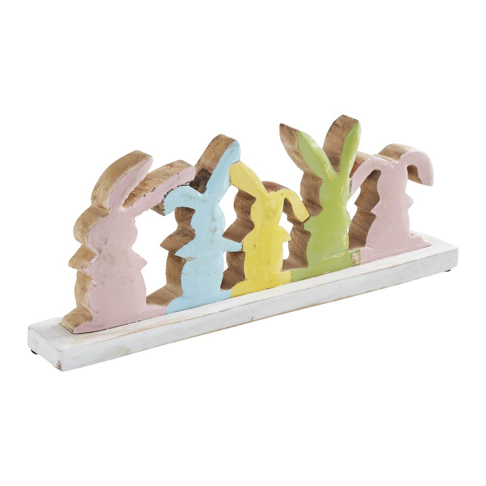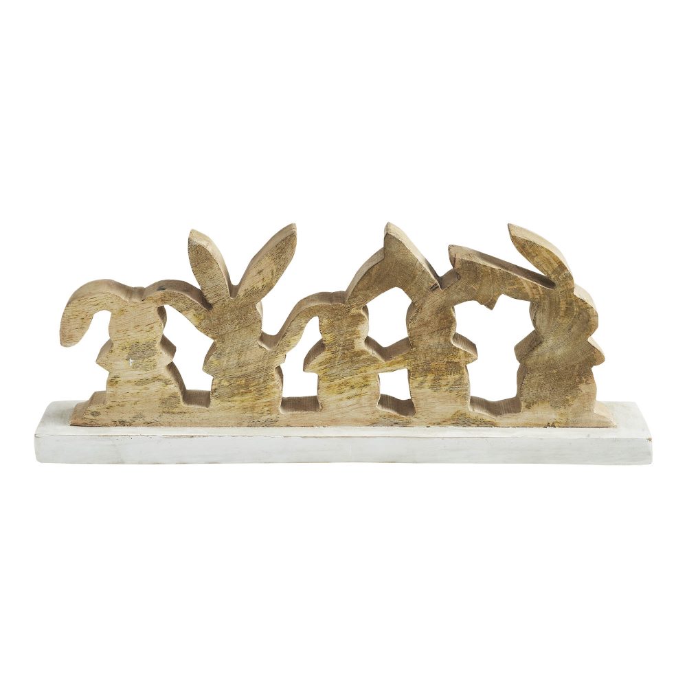 • Features five joined rabbit figures carved from solid wood for instant impact on mantels, shelves, and tiered trays.