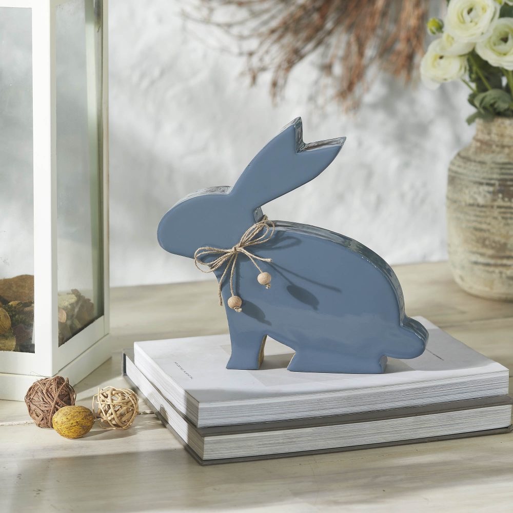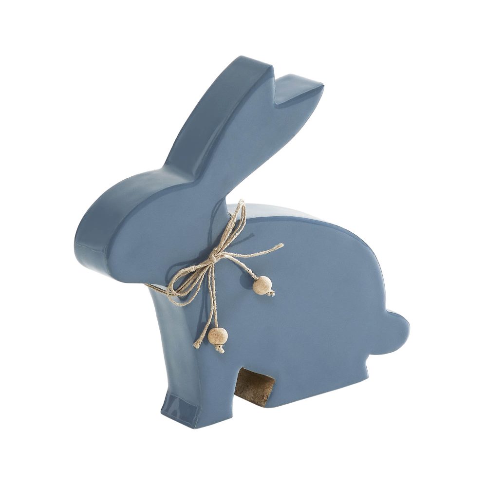 - Charming Design: Features a wooden bunny with a country blue enamel coating and a twine bow adorned with natural wood beads, adding a touch of rustic charm.