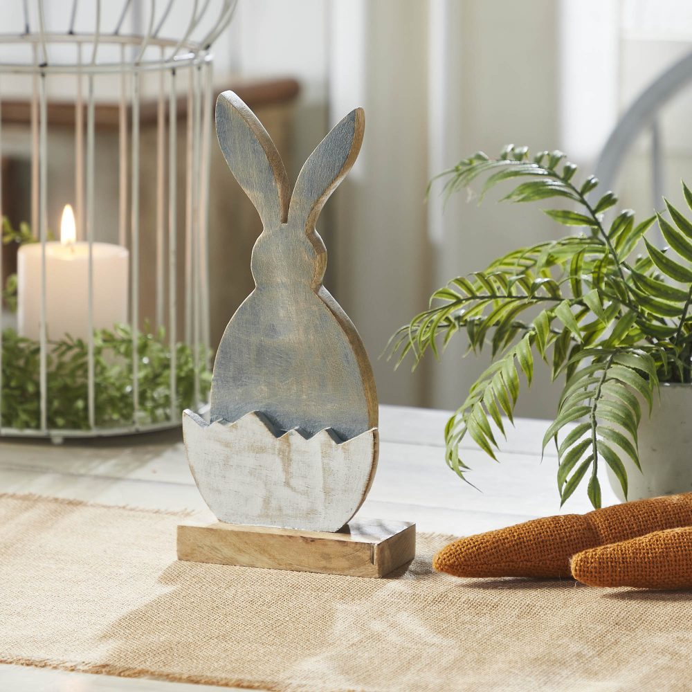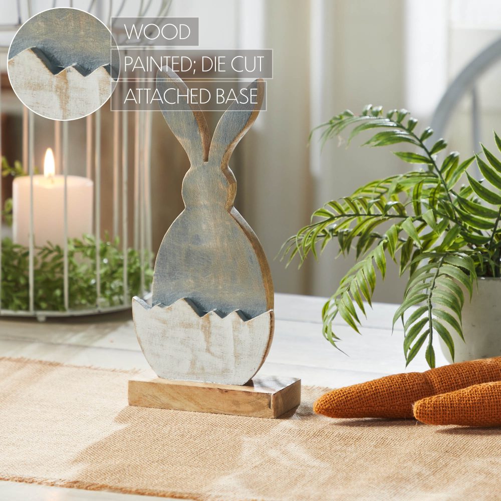 - Charming Design: Features a distressed storm grey bunny inside a faded white broken eggshell, offering a whimsical and vintage Easter touch.