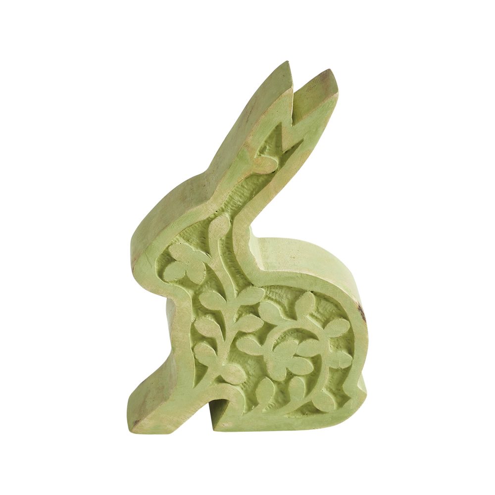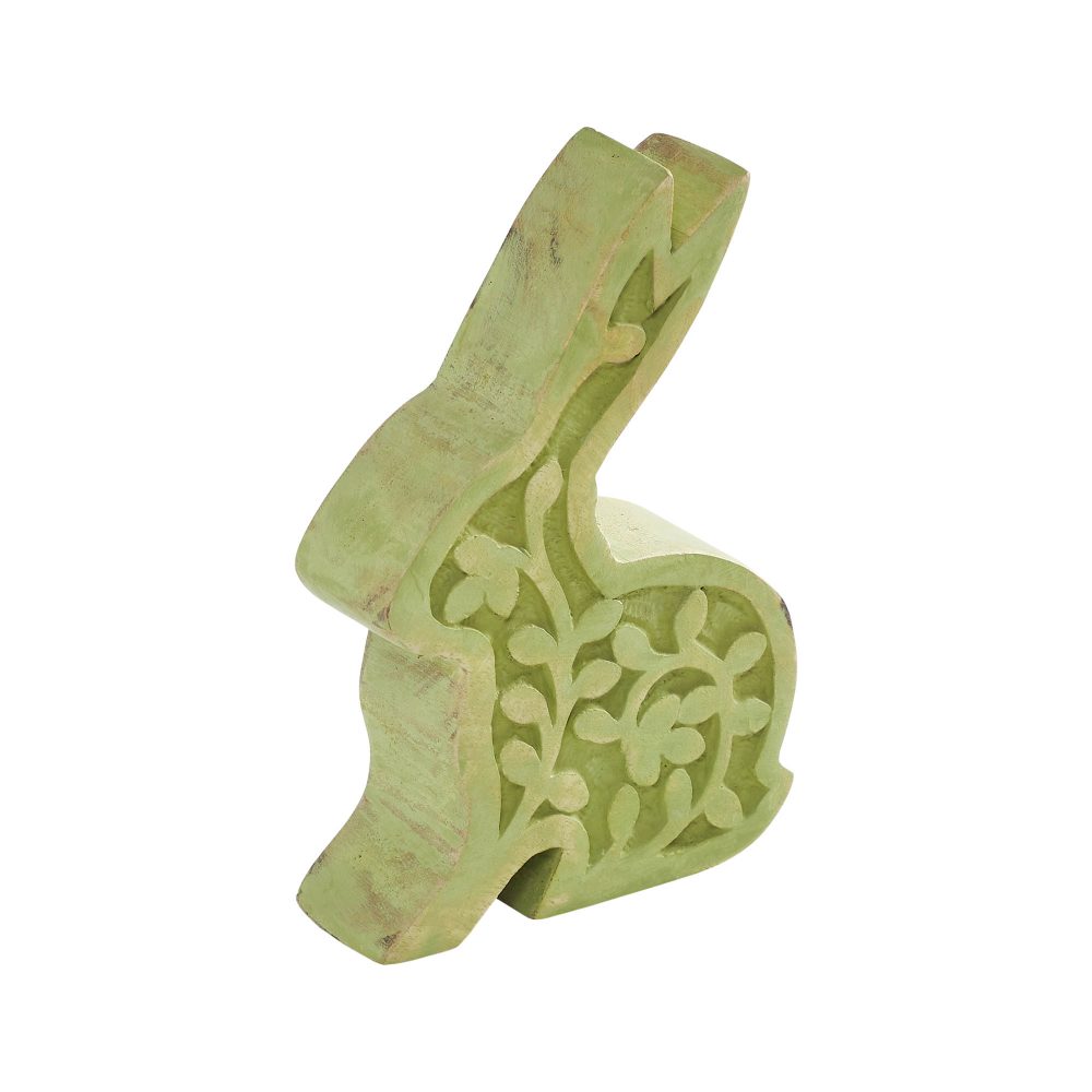 - Charming Design: Features a sage green painted bunny with an intricate carved floral design for a rustic, vintage spring look.