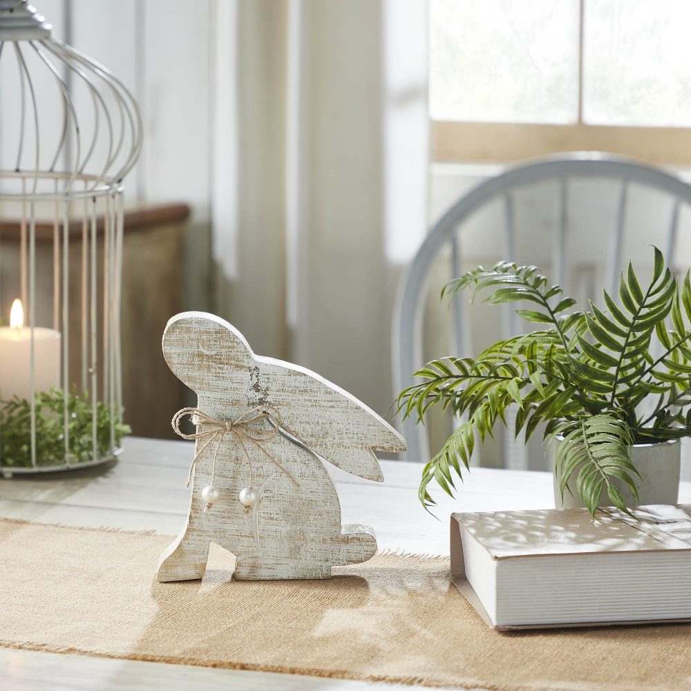 Add personality to your Easter styling. This handcrafted wooden bunny looks up with curiosity and innocence-carved from warm mango wood and accented with a strand of delicate faux pearls. Its soft, neutral tones and whimsical posture invite visual interest on mantels, trays, and bookshelves. Pair with other Bunny Hop figurines or use alone as a charming spring accent in farmhouse, cottagecore, or minimalist spaces.