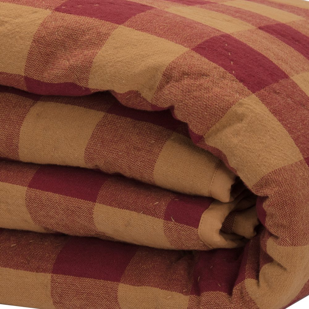 - PRIMITIVE STYLE: timeless shades of burgundy and tan are woven together to create a homespun look in a unique check layout. This lightweight heirloom-quality coverlet adds a bold primitive statement to your cozy abode while offering lasting quality and charm to pass on for many generations.