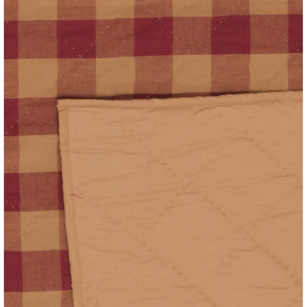 A timeless burgundy and tan look that never goes out of style, our Burgundy Check King Quilt Coverlet 105Wx95L coordinates with a variety of other collections. Dress your bed with a bold burgundy and tan check layout to add a pop of color to your primitive style home. Made with 100% soft, breathable cotton and reverses to a solid tan.