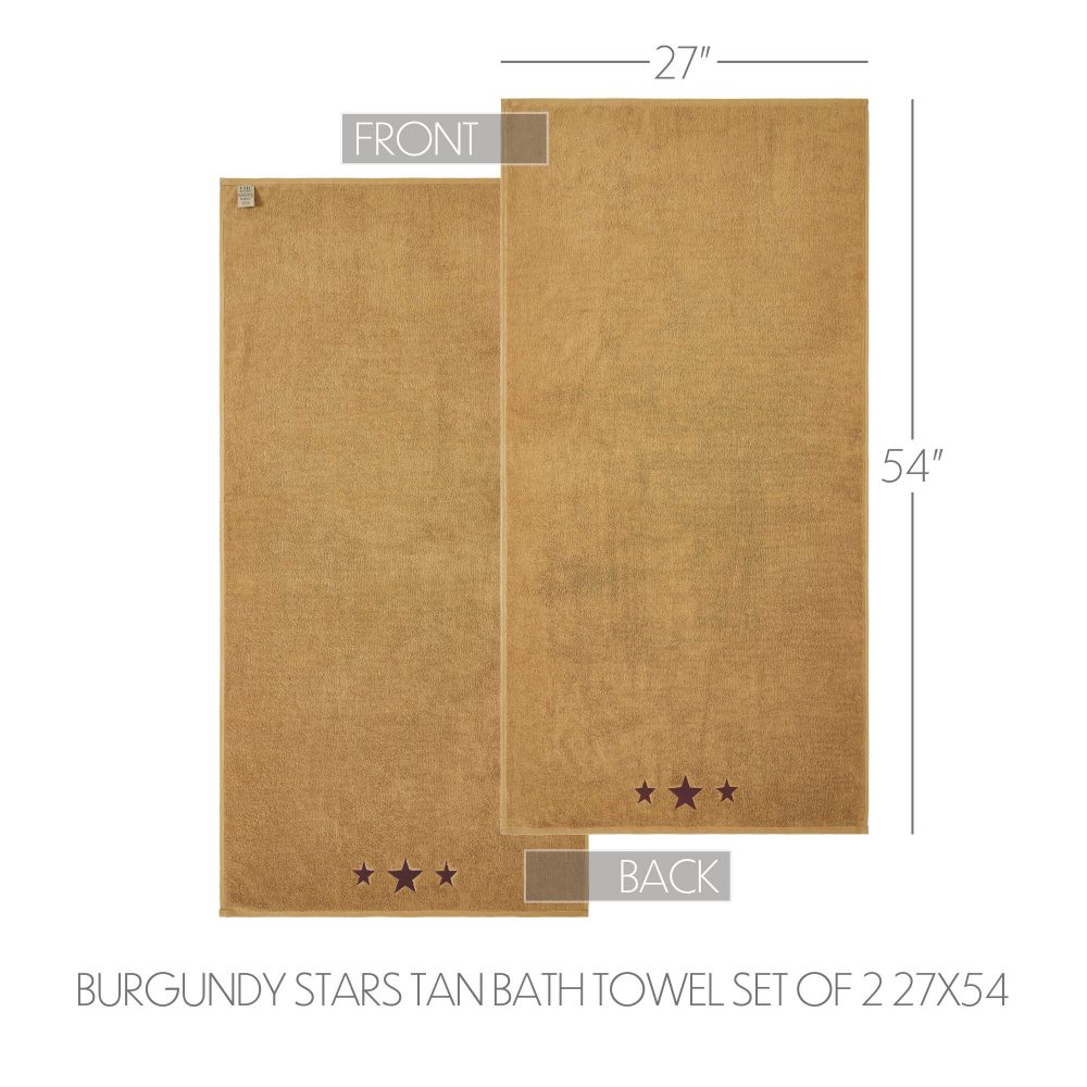Burgundy Stars Tan Bath Towel Set of 2 27×54