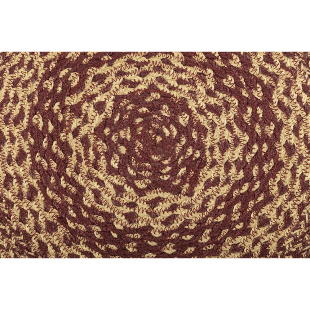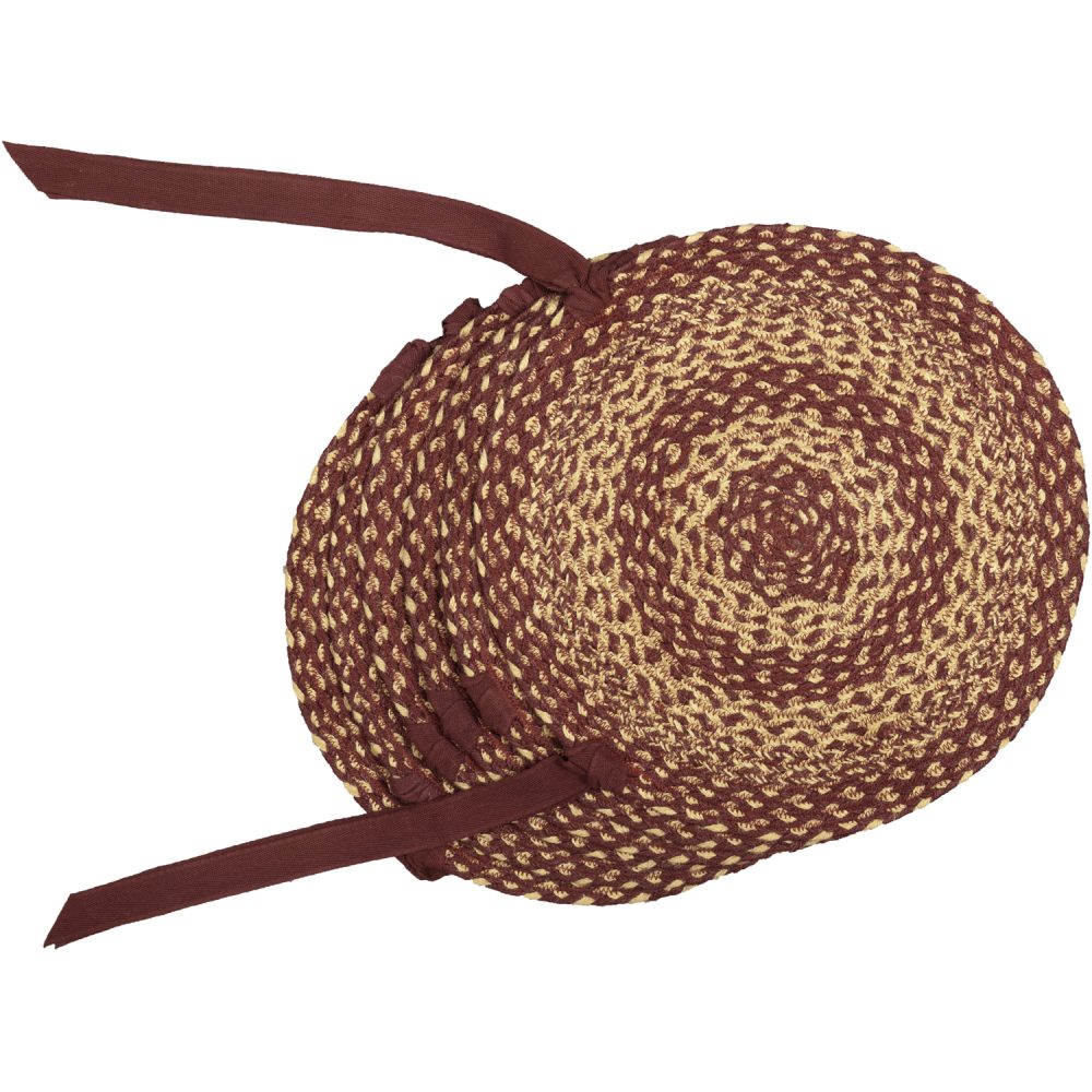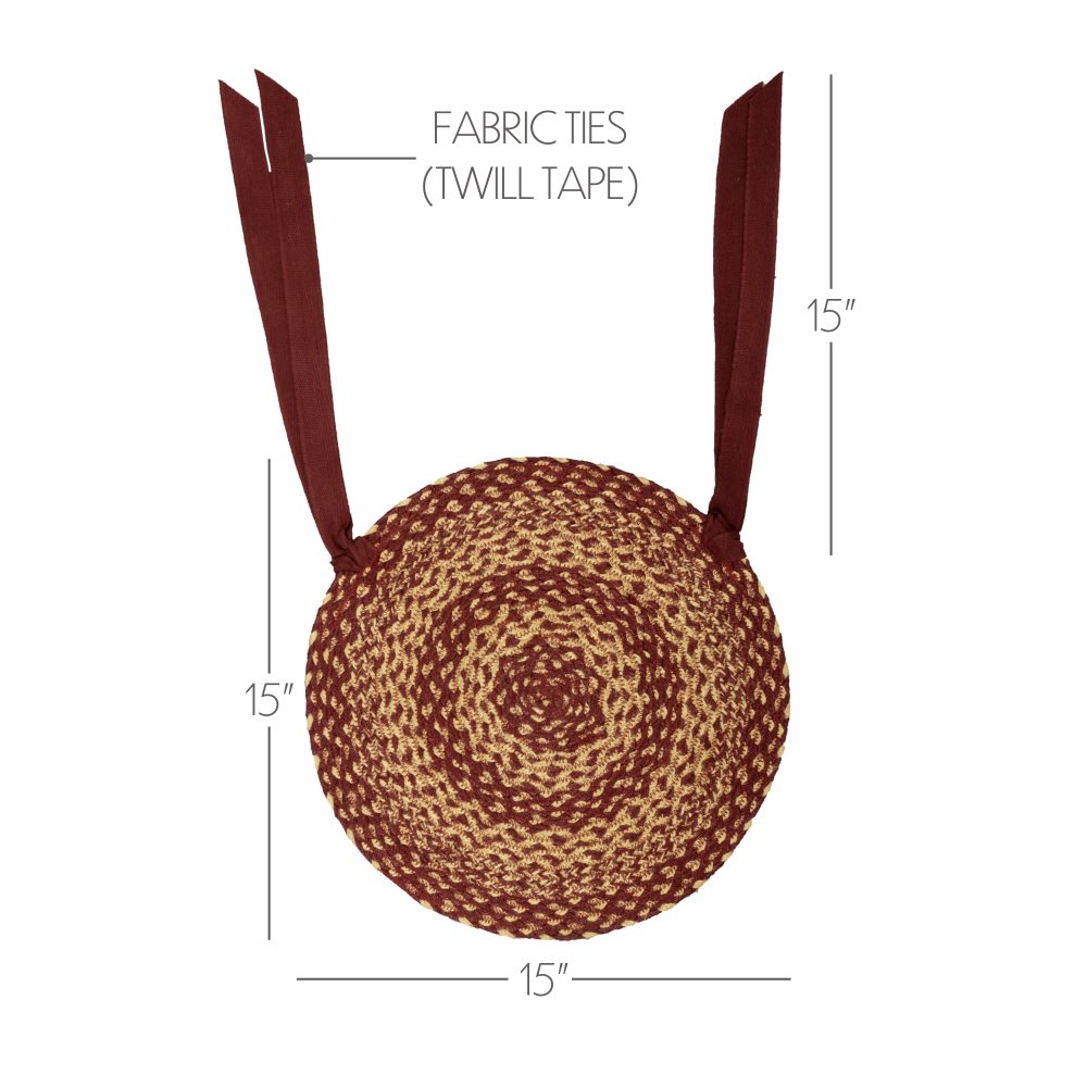 Get the style of braided jute with tightly woven braids of burgundy and dark tan. The Burgundy Tan Jute Round Chair Pad Set is a bundle of six durable 15-inch chair cushions with long ties to easily add a pop of rustic country charm to a wide variety of seating. These round seat pads feature an 80 percent jute blend that lays flat easily for natural texture and style while offering your chairs protection from damage. Spot clean and iron as needed. To give your kitchen or tabletop a complete look, pair with other items from the Burgundy Tan Collection including rustic farmhouse placemats, table runners and more.