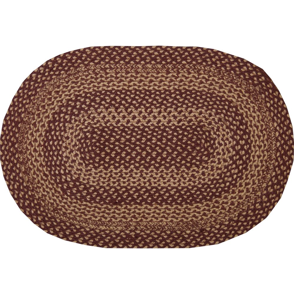 Create a warm, homey feeling with deep primitive colors in a curl-resistant jute blend that adds style and safety anywhere a small accent rug is needed. The Burgundy Tan Jute Rug measures 20x30 inches and features a classic oval shape and tight braids constructed with a durable jute blend. The special blend relaxes faster and stays flat. Features a blend of burgundy red and natural tan for a rustic look that complements a wide array of country farmhouse decor.