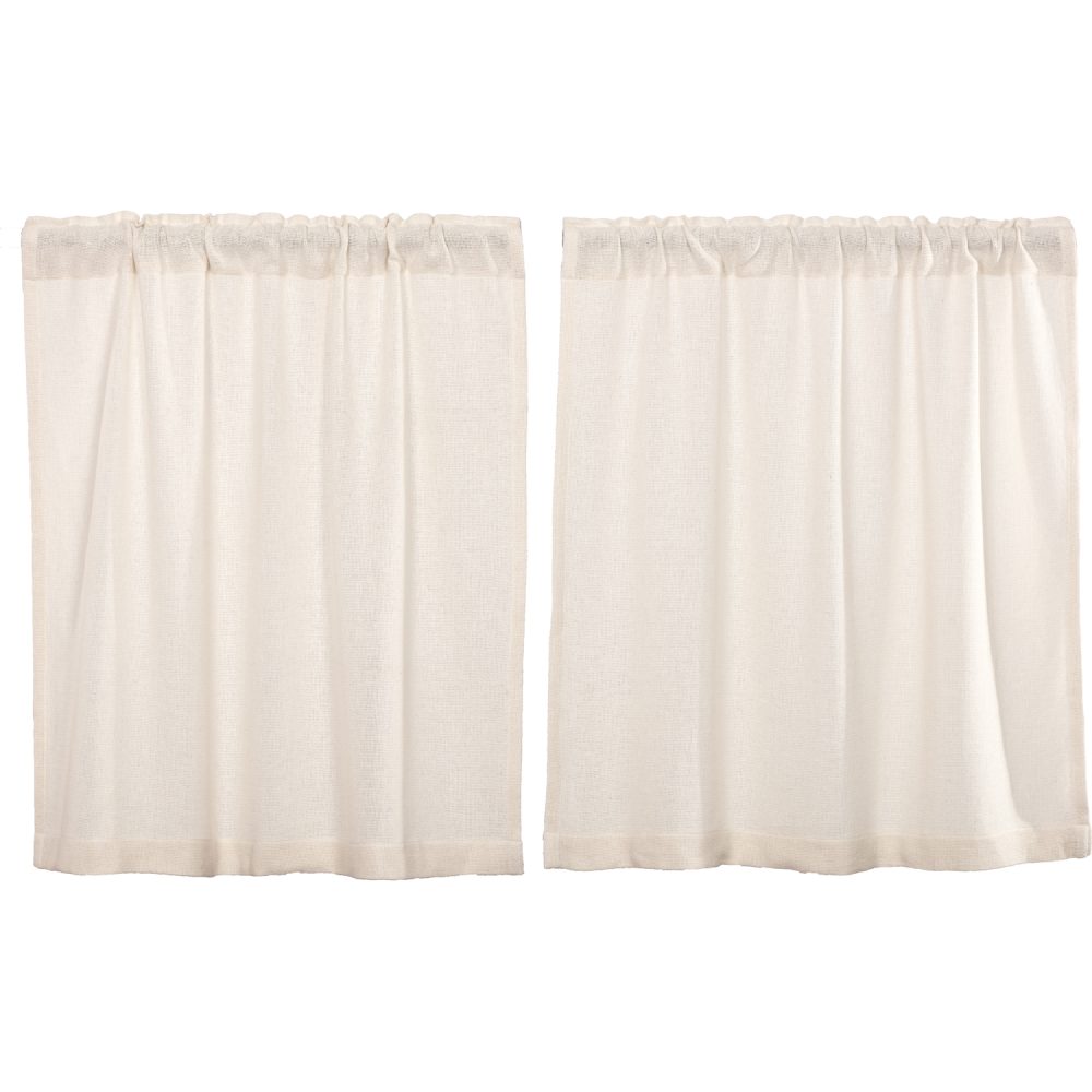 Create the perfectly charming country cottage window of your dreams with these 36 x 36 inch tier-style curtains. Featuring light and airy off-white burlap, the Burlap Antique White Tier Set provides just the right balance of privacy and sunshine. Pair with a matching valance or prairie swag for a fully decorated look or alone for a simple pop of texture and character. Also known as cafe or bistro curtains, these are a particularly good fit for decorating vintage kitchens, laundry rooms, and small bathroom windows.