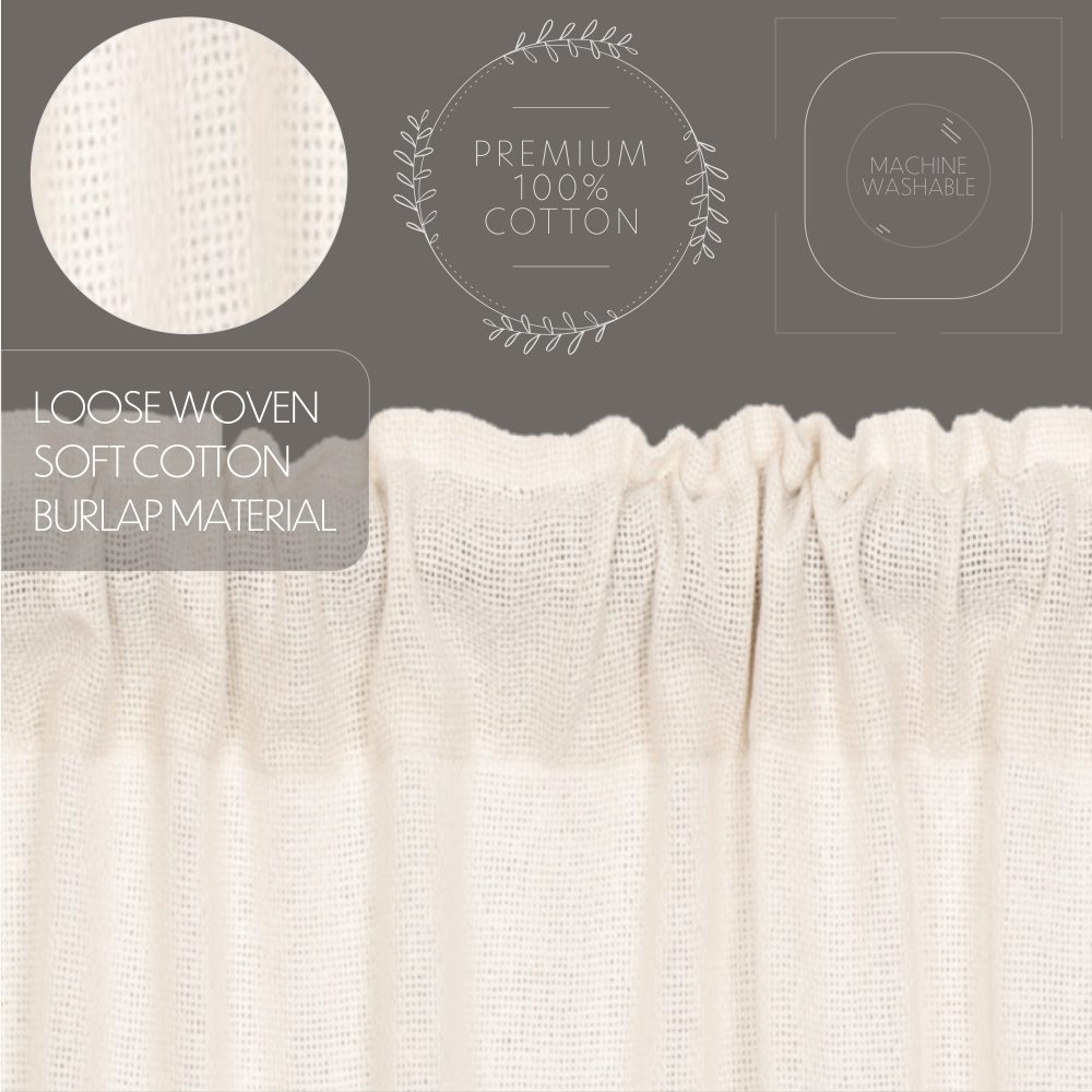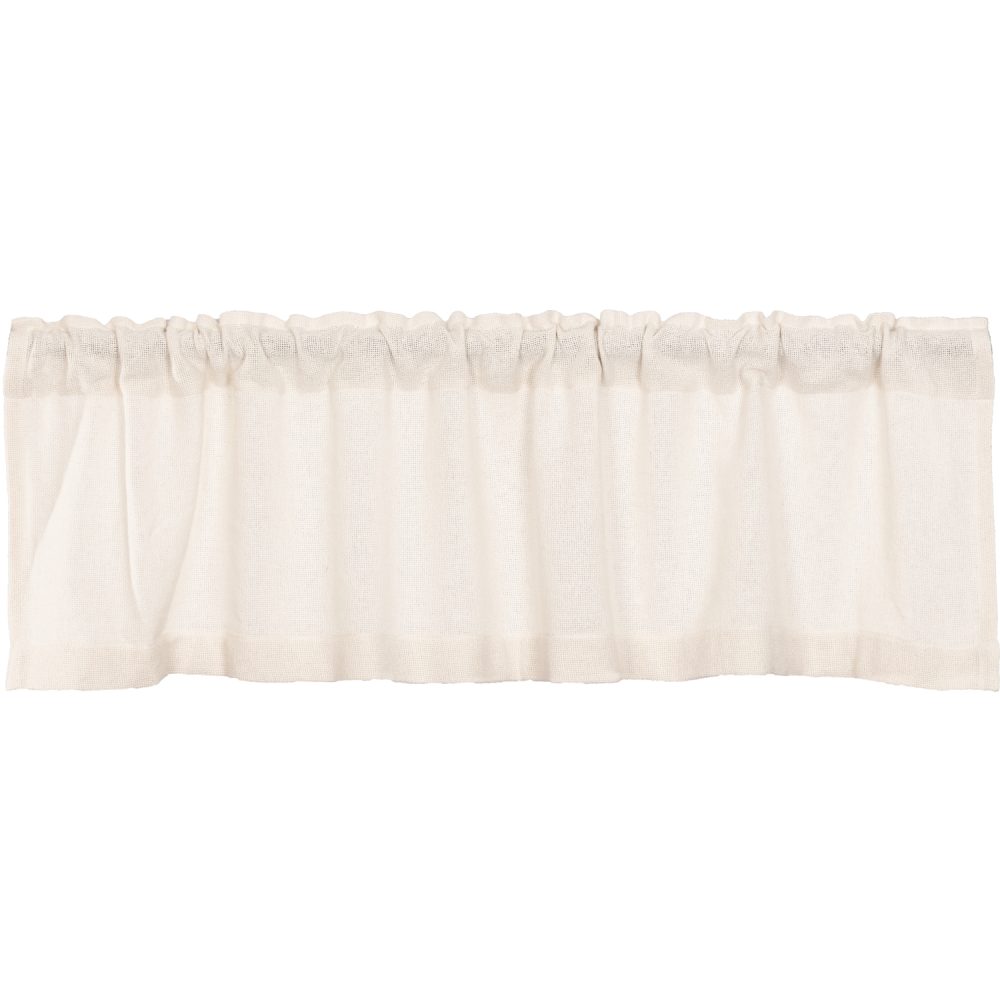 Brighten your home in vintage country style with the Burlap Antique White Valance. Crafted in tightly woven, soft cotton burlap and finished with a standard 2-inch hem fold at the bottom, this 16x60 off-white curtain transforms a room with cozy texture and warm farmhouse appeal. Place our relaxed yet fashionable kitchen curtains in any window to create rustic interest. Machine washable and iron-safe, this 100% cotton valance curtain comes with a rod pocket for easy hanging.