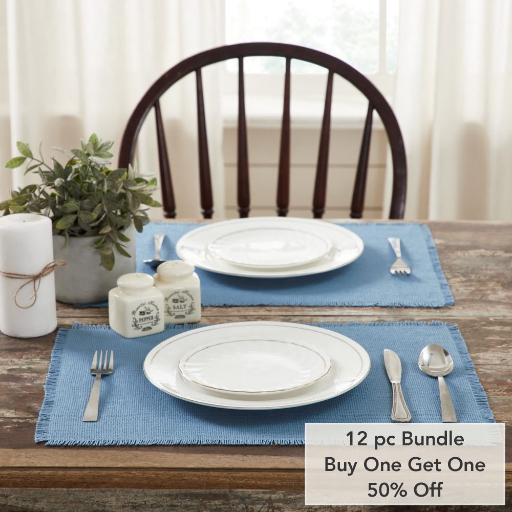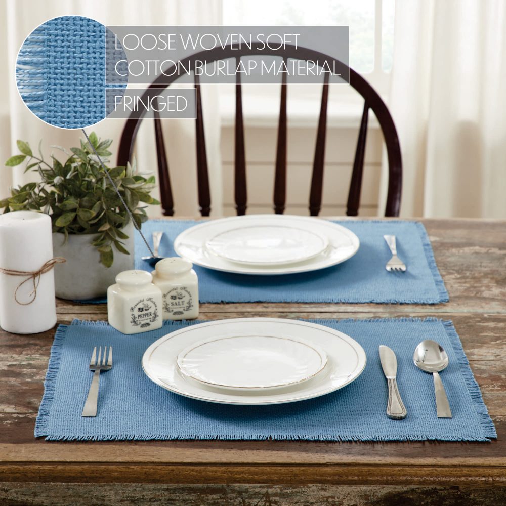 - Sku – 83391 – Burlap Blue Placemat Set of 6 Fringed 13×19 (2 Packages)