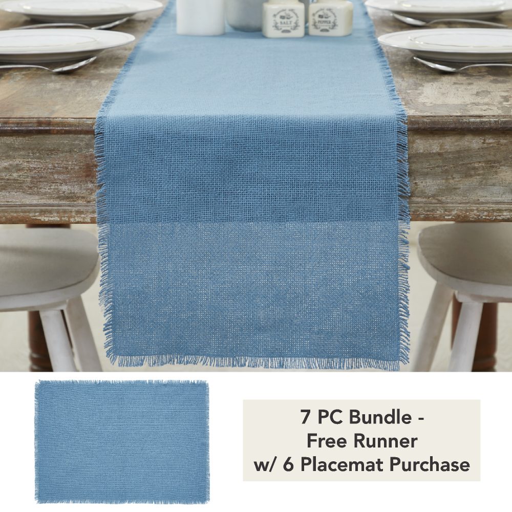 - Sku – 83391 – Burlap Blue Placemat Set of 6 Fringed 13×19 (1 Package)