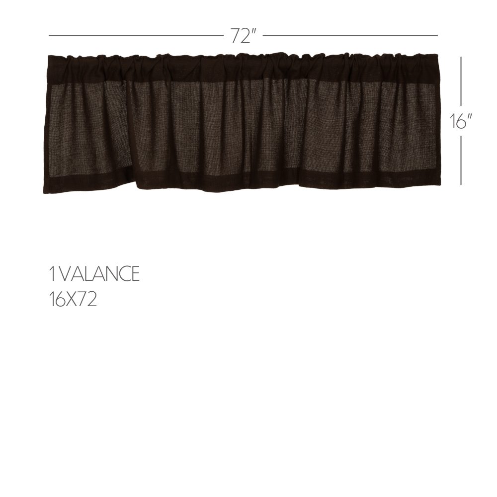 • FARMHOUSE VALANCE: Includes 1 valance (16×72); This farmhouse valance makes a charming gift for any occasion. Give this classic decor item to friends and family as a wedding, housewarming, or birthday present; With over two decades of experience crafting goods for American homes, our items are built to last for years to come; Our Burlap Chocolate rustic valance is constructed with 100% cotton for a window covering that keeps out more light.