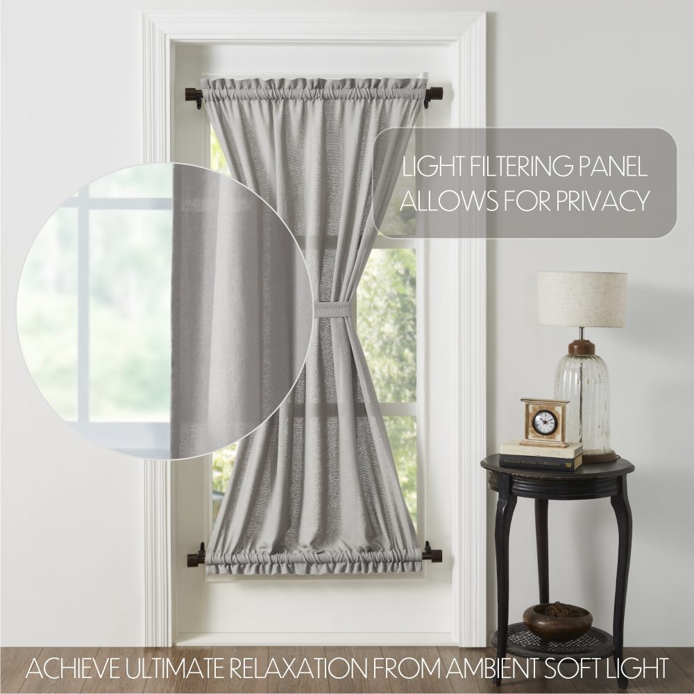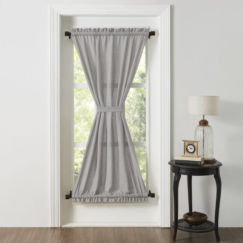 Create timeless country appeal while adding privacy with this rustic door panel curtain. The Burlap Dove Grey Door Panel 72x40 is crafted with soft dove grey cotton burlap and finished with a standard .5 inch hem fold on each side. This relaxed yet fashionable 100% cotton curtain includes 1 matching tieback with a button to wrap around the center for a different look and two rod pockets for easy hanging. The wonderfully textured fabric is machine washable.