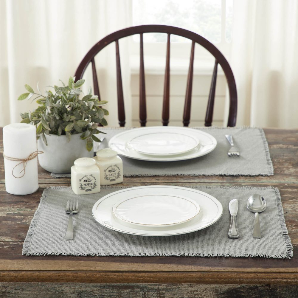 Burlap Dove Grey Placemat Set of 6 Fringed 13×19