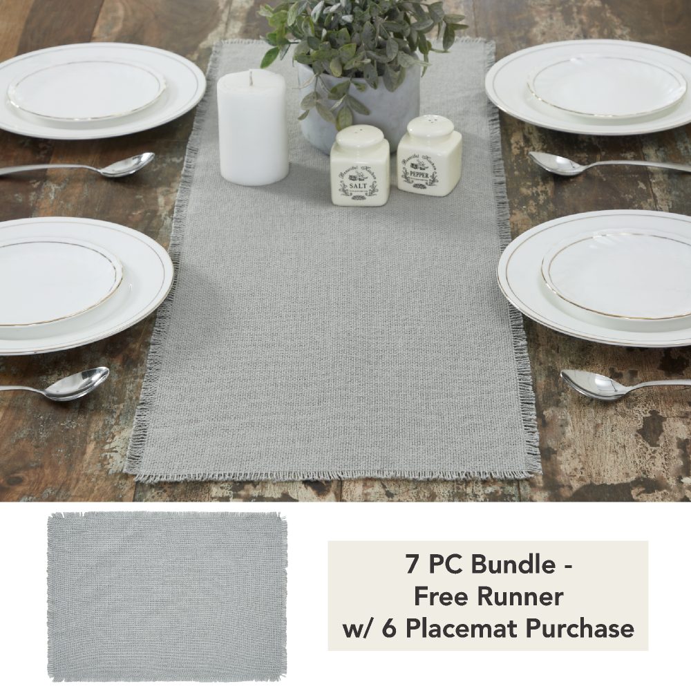 - Sku – 83388 – Burlap Dove Grey Runner Fringed 12×36 (1 Package)