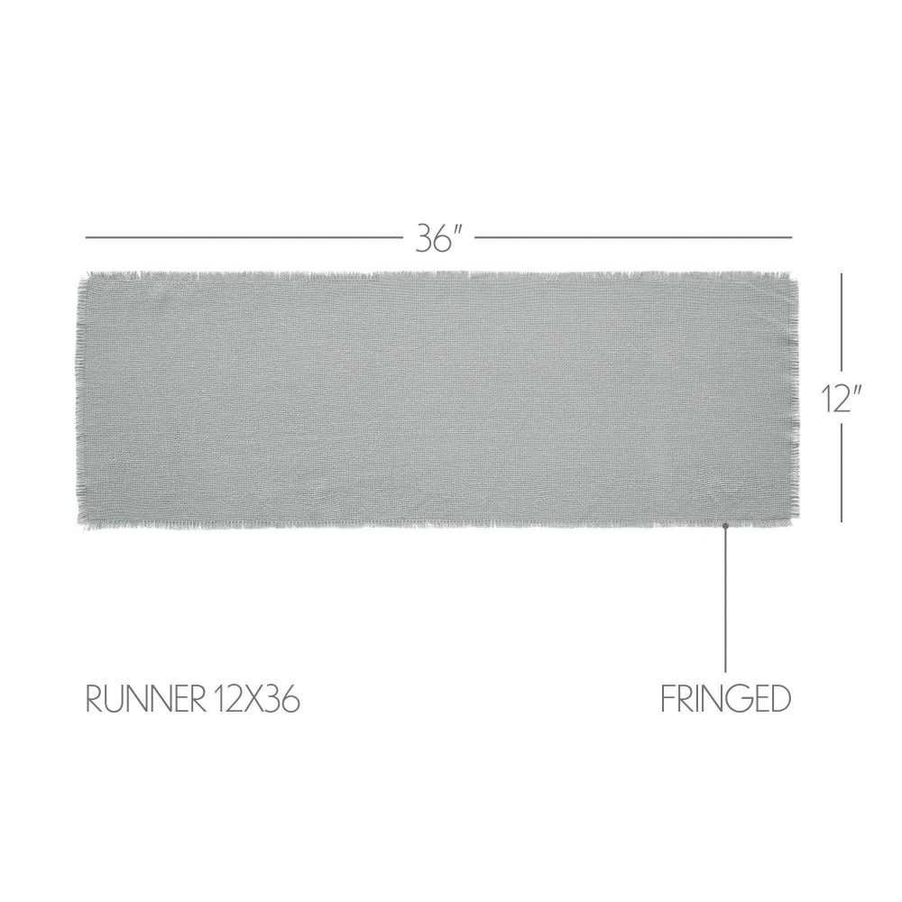 Create a joyful table for friends and family to gather round with modern color and classic texture. The Burlap Dove Grey Table Runner includes one table overlay measuring 12x36 inches. The rich texture and frayed edging of the burlap is given a modern twist with dove grey color for soft, country chic vibes. Complete your tabletop decor with other pieces from the Burlap Dove Grey Collection by VHC for modern farmhouse style.